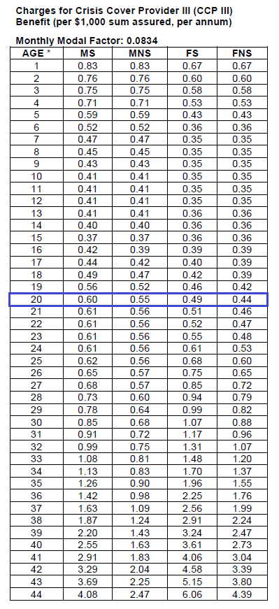 * Blue will be the mortality table charges for Critical Illness (CI)